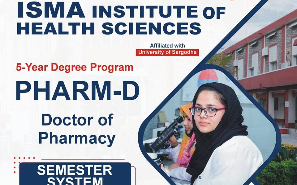 ISMA Institute of Health Sciences (Affiliated with University of Sargodha – NOC Granted By Pakistan Council of Pharmacy) proudly announces admissions for the following programs: